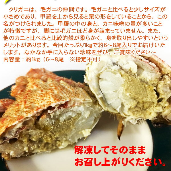 北海道産 送料無料 ボイル クリガニ 約1kg(6〜8尾入り) 毛ガニ