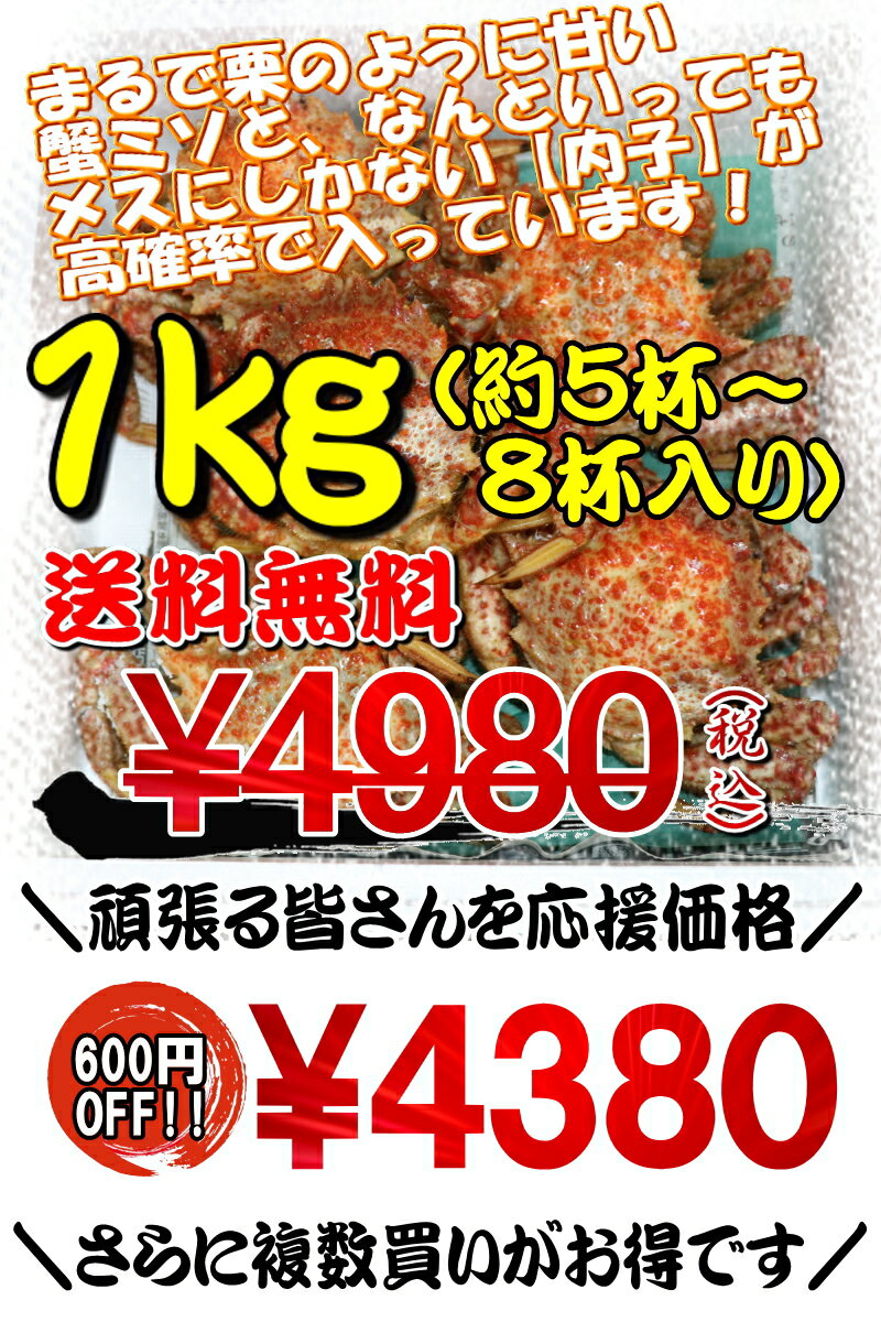 【最大4302円OFF】カニ 青森の毛蟹 トゲクリカニ 1kg 送料無料かにミソが美味!内子入り メス1キロ(約5杯〜8杯)浜茹で直送だから届いたらすぐ食べられます!漁師直送 青森県産陸奥湾産【トゲクリカニ1kg ボイル】