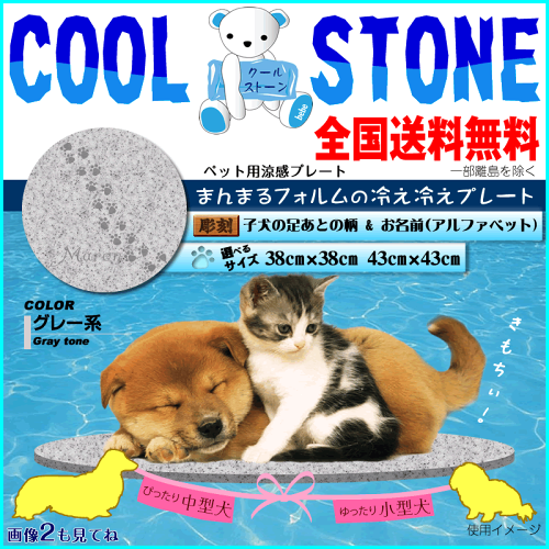 涼感プレート 暑さ対策直径38 &43cmグレー石 足あと柄 名入れ無料(アルファベット) ペット・ペットグッズ犬用品・犬ベット・マットマット・プレート小型犬