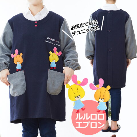 くまのがっこう がんばれルルロロニット後ろボタン割烹着 M-Lサイズ ra42120 エプロン メール便不可 あったか 冬 チュニック かわいい おしゃれ かっぽう着 保育士